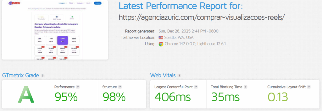 O plugin é totalmente otimizado, em alguns dos nossos testes conseguimos obter nota máxima na ferramenta Gtmetrix.